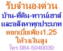 รับบริการจำนองทั่วประเทศ บ้าน ตึกแถว เทาวเฮาส์ คอนโด ที่ดิน ดอกเบี้ยเริ่มต้นที่0.90สตางค์ ผ่อนชำระได้ คุณบี084-7946105 (ตรวจสอบก่อนตัดสินใจ)