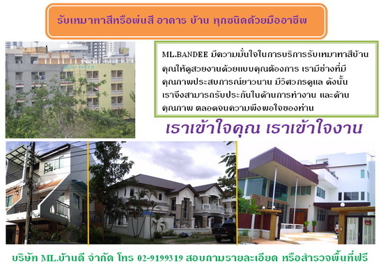 ML.BANDEE มีความมั่นใจในการบริการรับเหมาทาสีบ้านคุณให้ดูสวยงานด้วยแบบคุณต้องการ เรามีช่างที่มีคุณภาพประสบการณ์ยาวนาน มีวิศวกรดูแลให้ทุกเวลา ดังนั้น เราจึงสามารถรับประกันในด้านการทำงาน และด้านคุณภาพ ตลอดจนความพึงพอใจของท่าน