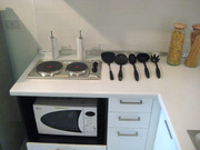 โต๊ะวางทีวี แอร์ 2 เครื่อง พร้อมมุมครัวที่พร้อมใช้งาน รวมทั้งมุมซักล้าง