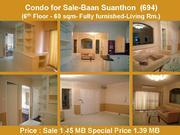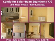 ****คอนโดบ้านสวนธนมี 2 ห้องนอน 1 ห้องรับแขก 1 ห้องน้ำ โครงการคุณภาพดี แถวบางนา ศรีนครินทร์ มีพื้นที่ใช้สอยเกือบ 60 ตรม ชั้น 1 มีสวนเพิ่ม 16 ตรม ห้องครัวบิวท์อิน มีที่จอดรถส่วนตัวระบุคัน ไม่แออัด ที่จอดรถมีเท่ากับจำนวนห้อง อาคารหนึ่งมี 6 ชั้น ชั้นละ 4 ห้อง ห้องมุมทุกห้อง มีลิฟท์ เป็นโครงการของแลนด์แอนด์เฮ้าส์ อยู่ใกล้ซีคอน ไบเทค ลาซาล มีห้างคาร์ฟูร์ แม็คโคร อยู่ปากซอย(ซ.ศรีด่าน22)ซอยนี้มีแต่หมู่บ้านใหญ่เยอะมาก มีคอนโดเพียงแห่งเดียว หากทำงานราชการกู้ได้ 100% นะคะ หากสนใจลองโทรมาคุยกันนะคะ
