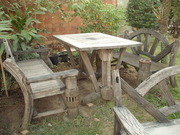 ขายชุดเก้าอี้ไม้ล้อเกวียน ทั้งชุด 5,000 บาท พร้อมทั้งยังมีชุดโต๊ะไม้อื่นๆอีกด้วย
