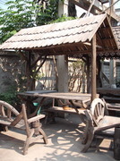 *นอกจากนี้ทางเรายังมีโต๊ะไม้ล้อเกวียนทั้งชุดที่มีหลังคากันแดด จำนวน 2 ชุด ดังนี้
