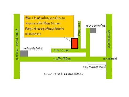 เหมาะสำหรับสร้างโรงงาน มีใบอนุญาติสร้างโรงงานพร้อม ห่างจากตลาดหัวตะเข้เพียง 3 กม. ที่ดินกว้าง 40 เมตร X 80 เมตร ติดต่อเจ้าของโดยตรง คุณสัญญา โทร. 0816554444