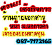 ด่วน!! เซ้งร้านถ่ายเอกสารพร้อมอุปกรณ์อื่นๆเพี๊ยบ อยู่หน้ามหาวิทยาลัยหอการค้า พึ่งปลูกใหม่ ทำเลดี มีลูกค้าประจำ มี 1 ห้องนอน 1 ห้องน้ำ ราคา 280,000 รวมค่ามัดจำ คลิ๊กเลย.