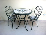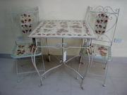 ชุดเก้าอี้สนาม ผลิตจาก wrought iron ท๊อปด้านบนเป็นเซรามิกและใช้ powder coating พ่นและอบจึงทำให้สามารถทนต่อทุกสภาพอากาศ หากสนใจสามารถชมได้ที่ http://www.chairsntables.com/">www.chairsntables.com หรือติดต่อคุณโรจนา 081-2554576 และสามารถชมได้ตามงานแสดงสินค้าและเฟอร์นิเจอร์จัดแสดงวันที่ 10ม.ค-19ม.ค 2552 ณ อิมแพคอารีน่า เมืองทองธานี Hall 1-5