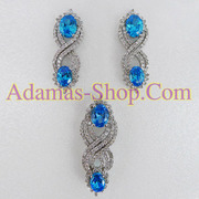 ขาย จี้เงินแท้ 925 ทรงยาวระย้า ประดับเพชรสวิสสีฟ้า มีต่างหูเข้าชุดขายด้วย ส่ง EMS ฟรี