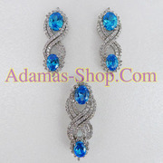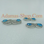 ขาย ต่างหูเงินแท้ 925 ประดับเพชรสวิสสีฟ้า มีจี้เข้าชุดขายด้วย ส่ง EMS ฟรีทั่วไทย