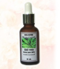 สารสกัดว่านหางจระเข้ ( Aloe vera extract )สารสกัด บริสุทธิ์เข้มข้น 100% ซึ่งมีไกลโคโปรตีน , โพลีแซคคาไรด์ มีสรรพคุณทางยา สามารถบำรุงผิวได้อย่างล้ำลึกถึงผิวชั้นใน ช่วยปรับสภาพผิวลดอาการแพ้ระคายเคืองโดยเฉพาะผิวที่ไหม้เกรียมแดด ช่วยปกป้องผิวจากรังสียูวี และสมานแผลเป็นต่างๆทำให้แผลหายเร็วขึ้น ลดการอักเสบของผิวได้อย่างมีประสิทธิภาพ กระตุ้นการสร้างสารคลอลาเจน ให้ความชุ่มชื้นแก่ผิว ให้ผิวเรียบเนียน กระชับรูขุมขน และลบรอยจุดด่างดำที่ผิวได้เป็นอย่างดี และช่วยให้รอยแผลเป็นจางลง ลดการอักเสบของสิวทำให้สิวแห้งเร็วมีฤทธิ์ฆ่าเชื้อแบคทีเรีย เมื่อใช้เป็นประจำจะสังเกตได้ชัดว่าผิวนั้นมีความนวลเนียนสดใส นุ่มและชุ่มชื้นไม่แห้งกร้าน เนื่องจากเป็นสารสกัดจากสมุนไพรธรรมชาติมีสรรพคุณที่มากมาย และมีความเข้มข้นสูง จึงทำให้ผิวได้รับสารบำรุงต่างๆได้อย่างมีประสิทธิภาพ ( เหมาะกับทุกสภาพผิว ) ส่วนประกอบสำคัญ : Aloe vera extract pure 100% วิธีใช้ -สามารถทาผิวได้โดยตรงแบบเพียวๆ แล้วจึงทาครีมบำรุง -หรือใช้ผสมลงในครีมบำรุง , เจล , ซีรั่ม , โทเนอร์ ประมาณเหรียญห้าสิบสตางค์ สารสกัดปริมาณ 1-2 หยด คนให้เข้ากันดี จึงทาผิวหน้าและลำคอ เช้า-เย็น - ถ้าผสมสารสกัดว่านหางจระเข้ ปริมาณ 10 ml. ลงในครีมบำรุงผิว , โลชั่น หรือ โทเนอร์ ปริมาณ 100 ml. จะได้ ครีมบำรุงผิว / โทเนอร์สารสกัดว่านหางจระเข้ ที่มีความเข้มข้นสูง ใช้ทาบำรุงผิวหน้า หรือผิวกาย เช้า-เย็น เพื่อกระชับรูขุมขน ลดรอยคล้ำด่างดำของผิวและลดสิว ( สามารถปรับความเข้มข้นได้ตามความต้องการ ) ข้อควรระวัง - ควรทดสอบอาการแพ้และอาการระคายเคืองก่อนใช้เพราะสภาพผิวแต่ละคนมีความแตกต่างกัน โดยทาผิวบริเวณท้องแขนทิ้งไว้ 24 ชม.เป็นอย่างน้อย หากไม่เกิดอาการระคายเคืองก็สามารถนำไปใช้ทาผิวหน้าได้ *ผลิตภัณฑ์ของเรามีความปลอดภัยสูงเนื่องจากเป็นสารสกัดที่มาจากธรรมชาติ100%ไม่มีสารเคมี ไม่มีสารที่เป็นอันตรายต่อผิวหน้า ไม่ผสมสารต้องห้าม ปลอดภัยต่อผิวของลูกค้าอย่างแน่นอน ซึ่งทางร้านยินดีรับประกันในตัวสินค้าค่ะ * ปริมาณ 30 ml. ราคา 350 บาท
