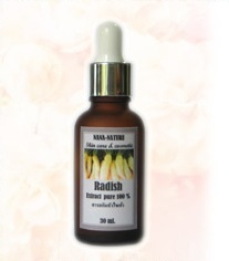 สารสกัดหัวไชเท้า ( Radish Extract ) สารสกัดชนิดเข้มข้นบริสุทธิ์100% ช่วยลด ฝ้า กระ จุดด่างดำ ทำให้หน้าใสกระจ่างขึ้น สารสกัดหัวไชเท้า มีสารไกลโคไซด์ ที่มีชื่อว่า ไฮโซไซยาเนต อุดมด้วยกรดแอสคอบิค วิตตามิน เอ ช่วยผลัดเซลล์ผิว มีฤทธิ์ยับยั้งการเกิดเมลานิน ที่มากผิดปรกติอันเป็นสาเหตุของฝ้า กระ รอยด่างดำ ช่วยลดอาการอักเสบที่เกิดจากสิว ทำให้สิวแห้งและค่อย ๆ จางลงเพราะมีคุณสมบัติผลัดเซลล์ผิว สารสกัดหัวไชเท้า ยังมีคุณสมบัติช่วยทำความสะอาดรูขุมขน ล้างสารพิษ พร้อมทั้งสิ่งอุดตันในรูขุมขน ชำระล้างไขมันในรูขุมขนร่วมกับสิ่งอุดตันอันเป็นสาเหตุของการเกิดสิว ช่วยป้องกันริ้วรอยแก่ก่อนวัย ใช้เป็นประจำช่วยลดสิว ทำให้ผิวใส เนียนนุ่ม ดูอ่อนกว่าวัยช่วยให้ผิวแข็งแรงขึ้น ช่วยให้เส้นเลือดฝอยบนผิวหน้าขยายตัวดีขึ้น ส่วนประกอบสำคัญ : Radish Extract pure 100% วิธีใช้ -ผสมลงในครีมบำรุง , เจล ,ซีรั่ม , โทเนอร์ ประมาณเหรียญห้าสิบสตางค์ สารสกัดปริมาณ 1-2 หยด คนให้เข้ากันดี จึงทาผิวหน้าและลำคอ เช้า-เย็น -ถ้าผสมสารสกัดหัวไชเท้า ปริมาณ 10 ml. ลงในครีมบำรุงผิว , โลชั่น หรือ โทเนอร์ ปริมาณ 100 ml. จะได้ครีมบำรุงผิว / โทเนอร์สารสกัดหัวไชเท้าที่มีความเข้มข้นสูงใช้ทาบำรุงผิวหน้า หรือผิวกาย เช้า-เย็น เพื่อผิวกระจ่างใส ลดรอยคล้ำด่างดำของผิวและลดสิว ( สามารถปรับความเข้มข้นได้ตามความต้องการ ) ข้อควรระวัง - ควรทดสอบอาการแพ้และอาการระคายเคืองก่อนใช้เพราะสภาพผิวแต่ละคนมีความแตกต่างกัน โดยทาผิวบริเวณท้องแขนทิ้งไว้ 24 ชม.เป็นอย่างน้อย หากไม่เกิดอาการระคายเคืองก็สามารถนำไปใช้ทาผิวหน้าได้ - ควรทาครีมกันแดดอย่างสม่ำเสมอ *ผลิตภัณฑ์ของเรามีความปลอดภัยสูงเนื่องจากเป็นสารสกัดที่มาจากธรรมชาติ100%ไม่มีสารเคมี ไม่มีสารที่เป็นอันตรายต่อผิวหน้า ไม่ผสมสารต้องห้าม ปลอดภัยต่อผิวของลูกค้าอย่างแน่นอน ซึ่งทางร้านยินดีรับประกันในตัวสินค้าค่ะ * ปริมาณ 30 ml. ราคา 350 บาท
