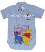 ชุดนอนแซก กระโปรงหมีพูห์ เดรสชุดนอนแขนสั้น คอปก ลายหมีพูห์กับพิกเล็ต ของแท้ ราคาขายส่ง