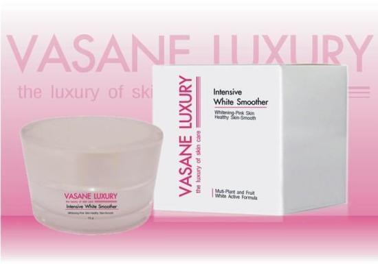 Vasane Luxury Intensive White Smoother ครีมแบเบอรี่ ปรับสภาพผิวขาวสูตรเข้มข้น บำรุงผิวขาวกระจ่างใส สุดขีด ขาวที่สุดเท่าที่คุณจะขาวได้ผิวอมชมพูแลดู มีเลือดฝาด สุขภาพดี ปรับผิวให้เรียบเนียนอย่างเห็นได้ ชัดด้วยคุณค่าของจากพืชธรรมชาติ ทั้ง Bioflavanoids , ชาขาว ,ผล Bearberry ผสาน Vitanin C และ B3 ลดความหมองคล้ำจากแสงแดด ด้วยการลดการสร้างเม็ดสีอย่างสมบูรณ์แบบ ลดเลือนจุดด่างดำของผิว และรอยดำจากสิวได้อย่างมีประสิทธิภาพ ฟื้นฟูสภาพผิวให้แข็งแรง คืนความชุ่มชื่นเปล่งปลั่งให้กับผิว อ่อนโยนต่อผิวและไม่ก่อให้เกิดการระคายเคืองกับผิว ดริ่มเห็นความแตกต่าหลังจากใช้เพียง 3 วัน *** ทั้งขาวอย่างรวดเร็ว และ บำรุงอย่างล้ำลึกไปพร้อมๆกันค่ะ ขายดีมากๆ 1 กระปุก 15 ml ใช้ได้นานกว่า 1 เดือน และสารสกัดที่ใช้นำเข้าจากต่างประเทศแทบทั้งหมดค่ะ Whitening : ปรับผิวให้ขาวกระจ่างใส โดยกระบวนการลดการสร้างเม็ดสีครบทุกขั้นตอน Pink Skin : เพิ่มการไหลเวียนของโลหิต ทำให้ผิวแลดูเลือดฝาดอมชมพู Healthy Skin : บำรุงผิวให้สุขภาพดี เปล่งปลั่งแลดูมีน้ำมีนวล Smooth : ปรับผิวให้เนียนเรียบ แน่นกระชับอย่างชัดเจน ปรับสภาพผิวหรือทำให้ผิวขาวเป็นเรื่องของการเสริมความงาม โดยส่วนใหญ่นิยมการมีผิวสีอ่อนมากกว่าผิวสีเข้ม เพราะแลดูสะอาดตาและสดใสกว่า ปกติผิวหนังจะทำหน้าที่ปกคลุมและปกป้องร่างกายนั้น จะมีการสร้างเม็ดสีผิวหรือเมลานิน(melanin pigment) เพื่อทำหน้าที่เป็นทหารป้องกันผิวหนังจากสิ่งแวดล้อม โดยเฉพาะอย่างยิ่งจากแสงแดดมิให้เกิดการเผาไหม้หรือบวมแดง โดยเมลานินหรือเม็ดสีผิวเหล่านี้จะดูดซับรังสี UVในแสงแดดเอาไว้ กระบวนการสร้างเมลานิน : ในชั้นของหนังกำพร้าชั้นล่างสุด (stratum basale) มีกลุ่มเซลล์ที่เรียกว่า เซลล์สร้างสีผิว (melanocytes) ทำหน้าที่สร้างและหลั่ง melanosomes (brown organells) ซึ่งภายในประกอบด้วย copper containing enzyme ชื่อ tyrosinase สามารถเร่งปฏิกิริยาออกซิเดชั่นของไทโรซีนเปลี่ยนเป็น indole 5,6 quinone สารตัวนี้และ intermediates อีกหลายตัว จะเกิดปฏิกิริยา polymerization ไปเป็น highly insoluble substance ซึ่งสามารถรวมตัวกับโปรตีนอย่างหนาแน่นด้วย sulfhydryl linkage เกิดเป็นเมลานิน ปรากฎเป็นสีผิวเกิดขึ้น ใบหน้าหมองคล้ำนั้นไม่มีใครต้องการให้เกิดกับตนเอง เพราะจะดูหมดราศี ไม่แจ่มใส ความสวยสง่าหายไป