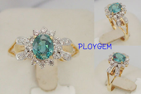 น้ำหนัก: พลอย 1.2 กะรัต,รวมนน.ทอง 3.9 กรัม รูปร่าง: พลอยรูปไข่