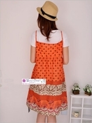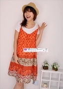 ชุดเดรสคลุมท้องลายดอกวงกลมเล็ก สีส้ม