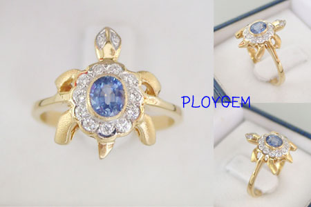 แหวนพลอยไพลินจันท์ ตัวเรือนทองคำแท้ แหวนดีไซน์รูปรูปเต่า