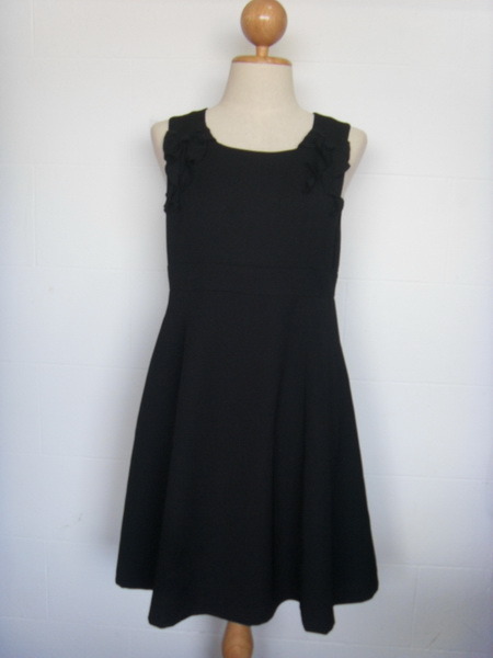 เดรสวินเทจ สีดำ ผ้าพลิ้วติดซิปหลัง พร้อมซับใน กระโปรงบาน แต่งโบเก๋ๆด้านหน้าสองข้าง ชุดนี้ดีไซน์สวยเรียบแต่เก๋ งานเนี๊ยบมากๆค่ะ ใหม่กิ๊กสุดๆ ขนาดเดรส * นิ้ว * อก เอว สะโพก ยาว 34 31 46 35