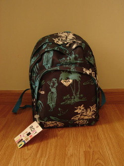 กระเป๋า เป้ roxy สีดำ ลายต้นมะพร้าว หัวซิปเป็นรูปลูกกุญแจด้านหน้าปักโลโก้ Roxy สีขาว มีช่องใส่ของใหญ่ 2 ช่องพร้อมซิปปิด 2 ด้าน ด้านหน้ามีช่องใส่ของ 1 ช่องพร้อมซิปปิด ด้านในมีช่องใส่ของเล็ก ๆ พร้อมช่องใส่บัตร 3 ช่อง ใส่ของได้เยอะมากค่ะ ด้านหลังกระเป๋าและสายสะพายบุฟองน้ำกันเจ็บหลัง สายสะพายปรับยาว - สั้นได้ สามารถซักทำความสะอาดได้ง่าย