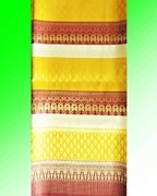 ผลิตจากเส้นไหม และเส้นไหมสีทองที่สลับกัน มองดูแล้วเหมือนจะมี 2 สีในผ้าผืนเดียวกัน