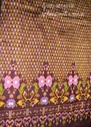 ผ้าไหมมัดหมี่ลวดลายต่างๆ ดีไซน์โดยชาวบ้าน เป็นผลิตภัณฑ์ชุมชน ผ้าไหมบางลวดลายที่โชว์ผลิตเพียงชิ้นเดียว