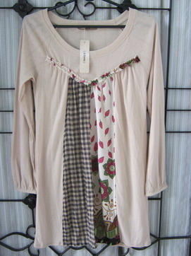 เดรสแฟชั่นเกาหลี ผ้ายืด ยี่ห้อ Libra สีครีม มีลายด้านหน้า สภาพใหม่เอี่ยมห้อยป้าย