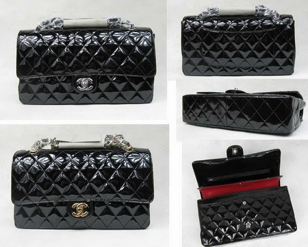 Chanel Classic Flap Bag ดำหนังแก้ว วัสดุเป็นหนังแก้ว อะไหล่เงินและทอง สายสะพายโซ่