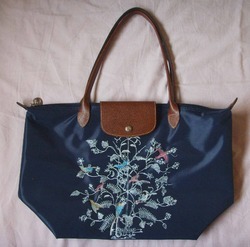 ลักษณะลาย ตัวนกเป็นลายปัก ส่วนต้นไม้เป็นลายสกรีน