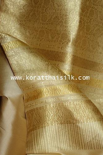 ผ้าไหมทอยกดอก สีทอง ลายกุหลาบพันปี