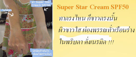 เจลอาบน้ำปรับผิวขาว(10 กลิ่นเลือกได้) ลิตรละ 250 บาท New !!! ครีมกันแดด Super Star Cream SPF50