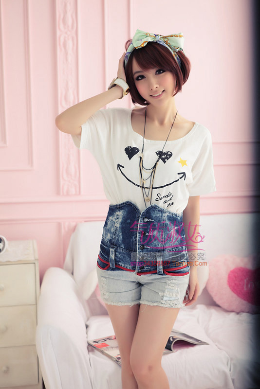 เสื้อ ผ้า cotton สรีน smile สีขาว * ไม่รวมกางเกงขาสั้นเอวสูง