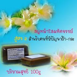 ยอดขายอันดับ1 ดาราคนดังใช้กันมานาน สบู่มหัศจรรย์ก้อนเดียวเปลี่ยนหน้าคุณ ด้วยส่วนผสมของไคโตซานจากปู โสม วิตามินE หน้าขาวใส สิวยุบ จุดด่างดำจางลง อย่างน่าอัศจรรย์ สูตร 1 สำหรับผู้เป็นสิวอักเสบ สิวหนอง หน้ามัน ต้องการให้หน้าขาวใส ยอดสั่งซื้อล้นหลามมากว่า 6 เดือน พิสูจน์ได้จากหน้าคนขายคือเดือนเองและยอดขายของที่ร้านว่าสูงสุดจริงๆ เป็นสบู่มหัศจรรย์ที่มีมานานเกือบ 10 ปี ส่งออกหลาย 10 ประเทศทั่วโลก ดารา นางแบบต่างๆที่ใบหน้าต้องถูกเครื่องสำอางค์ ถูกแดดทั้งวันก็เป้นขาประเจ้าสบู่ตัวนี้เยอะแยะมากๆเลยค่ะ สบู่ก้อนนี้เดือนแนะนำเลยค่ะ เพราะเห็นมาแล้วด้วยตาตัวเอง ว่าคนที่ใช้เพียง 2 ก้อนเหมือนไปเปลี่ยนหน้ามาเลย จากที่เคยสิวขึ้นเยอะมากๆ แต่กลับหน้าใสได้เดือนถึงได้กล้าบอกต่อลูกค้าได้เต็มปากเลยจ้า สบู่ตัวนี้นะคะมีส่วนผสมหลักๆคือ - ไคโตซาน ( สารสกัดจากเปลือกกุ้งและกระดองปู) - สารสกัดจากขมิ้น - น้ำผึ้งแท้100% - โสม1000ปี - วิตามินEบำรุงผิว เหมาะและใช้ได้ดีกับทุกสภาพผิว และทุกวัยตั้งแต่แรกเกิดเลยค่ะ เพราะอ่อนโยนมาก ช่วยชำระล้างสิ่งสกปรกและคราบเครื่องสำอางค์ได้หมดจด ช่วยแก้ปัยหา สิว ฝ้า กระ จุดด่างดำ รูขุมขนกว้าง หน้ามัน หน้าแห้งเป็นขุย หรือผิวผสม ให้กลับคืนสู่ความสมดุลของผิวได้อย่างดีเยี่ยม ใช้ทำความสะอาดลำตัวก้ได้นะคะ จะช่วยเรื่องกลิ่นตัว สิวหรือผดผื่นคันและผิวขาวขึ้นค่ะ
