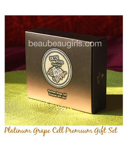 เซ็ทบำรุงผิว พรีเมี่ยม มาในแพคเกจหรูหรา สุดคุ้ม ด้วยเซลล์องุ่นพันธุ์ที่ใช้ผลิตไวน์ชั้นสูงและทองคำขาวแร่ธาตุที่หายาก Skinfood ได้รังสรรค์นำมาเป็นส่วนประกอบของครีมบำรุงผิวในชุด platinum grape cell ช่วย ให้เพิ่มน้ำหล่อเลี้ยงผิว ต่อต้านอนุมูลอิสระ ทำให้ผิวกลับมามีชีวิตชีวา ริ้วรอยลดลง ยกกระชับใบหน้า ปรับโทนผิวหน้าให้กระจ่างใสขึ้น ลดเลือนกระ ฝ้าจุดด่างดำ ให้ผิวกลับมาอ่อนเยาว์อีกครั้ง