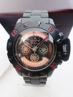 นาฬิกา Zenith Defy Xtreme Chronograph Copper:Black รุ่นยอดนิยม ทางเรายังมีรุ่นอื่นให้ชมอีกมากมาย เชิญแวะมาที่ www.DreamWatchShop.com สินค้าของเราเป็นตัวเดียวกันกับในรูป ถ้าสั่งซื้อแล้วไม่เหมือนในรูปยินดีคืนเงินครับ เชิญมาเป็นเจ้าของเลย ราคาพิเศษสุดๆ - ขนาด KingSize 44 mm. หนา 13 mm.เท่าขนาดจริง - หน้าปัดดีไซน์เอกสิทธิ์เฉพาะของซีนีท กระจกSapphireกันรอยขีดข่วน - ตัวเรือนเป็น Titanium สีดำเ สายผ้าชนิดเหนียวเก็บกับหนังแท้สีแดง ตัวล๊อคสายแบบคลิบล๊อคสองด้าน - ฝาหลังทึบ สลักโลโก้ชัดเจน ขันเกลียวกันน้ำได้ เม็ดมะยม 3ปุ่ม ปรับเวลา - ระบบ Quartz ชนิด Chronograph จับเวลาระบบ Fly Back - บอกวันที่ ตำแหน่ง4-5นาฬิกา จับเวลาเข็มวินาที บอกเวลานาทีที่9นาฬิกา บอกเวลาชั่วโมงที่3นาฬิกา *โดยรวม เป็นนาฬิกาที่คงทน ความเหมือน เหมือนมากๆ ตัวเรือนสาย สมบุกสมบันดีมาก ตามแนวคิด Defy Xtreme
