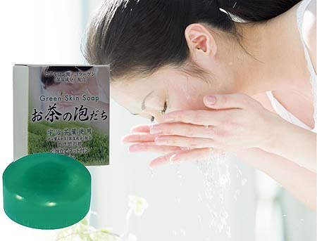 สบู่ล้างหน้าชาเขียว HIKARI Green Skin Soap ผสมคอลลาเจนและไฮยารูรอน
