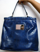 ขายกระเป๋า LYN หนังวัว อัดลาย สีน้ำเงิน ไฮโซ สวยๆ สภาพ 99% ถูกๆ ใช้งานน้อยค่ะ