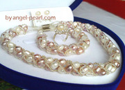 CR_L03 ชุดเครื่องประดับไข่มุกแท้สีขาวและชมพู ร้อยผสมคริสตัล