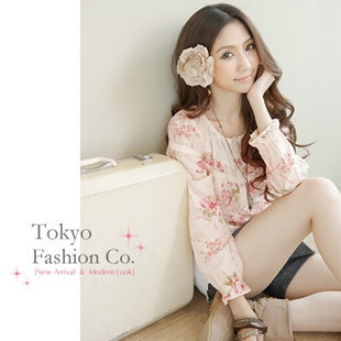 New!! ใหม่ค่ะ Tokyo Fashion Set2ชิ้น เสื้อแขนยาวผ้าฝ้ายสีชมพูอ่อนลายดอกไม้สีชมพูแต่งลูกไม้ช่วงอกติดกระดุมด้านหน้า+เสื้อสายเดี่ยวแต่งระบายลูกไม้สีขาว