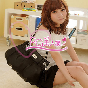 ใหม่ค่ะ PG กระเป๋าแฟชั่นไต้หวันหนังสีดำมีที่ปิดด้านบนดีไซน์จับจีบน่ารักค่ะ