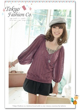 New ใหม่ค่ะ Tokyo Fashion Set 2 ชิ้น เสื้อยืดผ้า knit แขนสี่ส่วนสีม่วง + เสื้อสายเดี่ยวลายเสือตัวใน