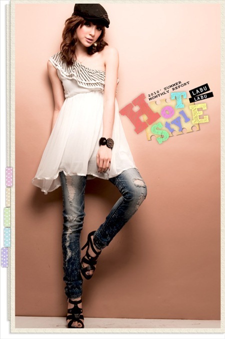 ระบายสองชั้นที่ไหล่สีขายดำ เป็นผ้าชีฟอง ช่วงตัวกระโปรงก้วาง ใส่กับยีนส์เปรี็ยวมากค่ะ ใส่เป็นเดรสก็สวยเซ็กซี่