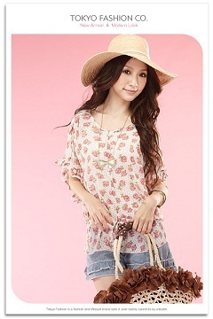 มาใหม่ค่ะ !! Tokyo Fashion เสื้อผ้าแฟชั่นเกาหลีแขนสั้นผ้าชีฟองสีขาวลายดอกไม้สีชมพูและจุดดำเล็กๆผูกเชือกรูดเข้ารูปช่วงเอว