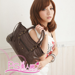 มาใหม่ค่ะ !! PG กระเป๋าแฟชั่นเกาหลีทรงสี่เหลี่ยมหนังสีดำแต่งหมุดทอง มีช่องซิปด้านหน้าและด้านหลัง