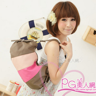 มาใหม่ค่ะ !! PG กระเป๋าแฟชั่นเกาหลีหนังสีน้ำตาลแต่งสีชมพูเพิ่มความสดใส แต่งสายเข็มขัดด้านข้าง