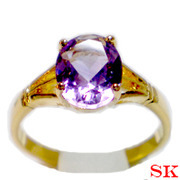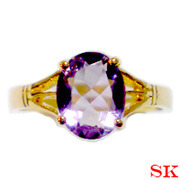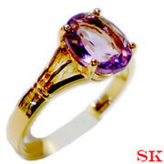 แหวนสไตล์แหวนพลอยเม็ดเดี่ยว เม็ดกลางฝังด้วยพลอยแอมิทิสต์แท้ ตัวเรือนทำด้วยเงินแท้ 92.5% ชุบด้วยทองแท้ 100% หนา 1 ไมครอน