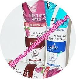 Small Doctor massage Baht Salt เกลืออาบน้ำกลิ่นหอมหวานสูตรผลัดผิวขาวใสและสลายไขมันส่วนเกินในตัวเดียวกัน มี 2 กลิ่นให้เลือกกลิ่นน้ำนม และกลิ่นไวน์แดง ผลิตจากเกลือทะเลบริสุทธ์และแร่ธาตุจากน้ำแร่และน้ำพุร้อนธรรมชาติมาสู่ผลิตภัณฑ์เกลืออาบน้ำสูตรพิเศษโดยเฉพาะ เพื่อความสะอาดสดชื่น ผิวเรียบเนียนดุจแพรไหม ช่วยให้หมุนเวียนโลหิตให้ดีขึ้นและรูปร่างที่ดีได้สัดส่วนน่าหลงใหล ปราศจากไขมันส่วนเกิน ลูบไล้ ขัดนวดบนผิวเปียกชุ่ม จนทั่วร่างกายนวดเน้นเป็นพิเศษตามบริเวณที่ต้องการ แล้วล้างออกด้วยน้ำสะอาด ควรใช้เป็นประจำทุกวัน จะช่วยลดไขมันส่วนเกิน และได้รูปร่างที่พิเศษ สวยงาม