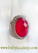 แหวนผู้ชาย เงินแท้92.5% ทับทิมเมืองกาญ เม็ดใหญ่ 1.7 ซม. ล้อมเพชรสวิส cz รอบ หรูหรา เด่น ทั้งเรือน 2.2 ซม. งานจิวเวลรี่