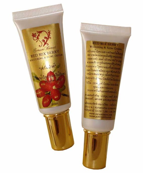 ในครีมตัว นี้ไม่มีตัวยาผสมอยู่ จะมีก็เพียงสารสกัดธรรมชาติจากผลไม้สีแดงชนิดต่างๆ สกัด และวิตามินต่างๆ พร้อมมอยซ์เจอร์ไรเซอร์ ส่วนเรื่องการแพ้ไม่ต้องกลัว ตัวนี้ไม่ทำให้แพ้แน่นอน (ยกเว้นรายที่แพ้ผลไม้บางชนิด) การเห็นผลอาจจะไม่ช้าหรือไม่เร็วจนเกินไป เพราะเป็นครีมจากธรรมชาติ 100% ค่ะ