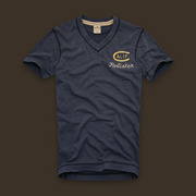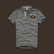 เสื้อยืด Hollister คอจีน สีเทา ผ้าฝ้าย มีกระดุม 2 เม็ด ปักโลโก้ที่หน้าอก