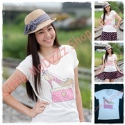 เสื้อยืดพิมพ์ลาย น่ารักๆ มีเกร็ดเพชรวิ้งๆ สดใส เป็นประกาย