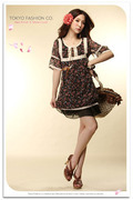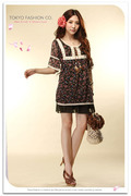T0002188 เสื้อ Tokyo Fashion พร้อมส่ง ชุดกระโปรงสีดำผ้าชีฟอง แต่งลูกไม้สีครีม มีโบว์สายหนังผูก นำเข้า Tokyo Fashion แท้ 100%
