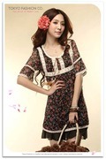 Tokyo Fashion พร้อมส่ง ชุดกระโปรงสีดำผ้าชีฟอง แต่งลูกไม้สีครีม มีโบว์สายหนังผูก นำเข้า Tokyo Fashion แท้ 100%