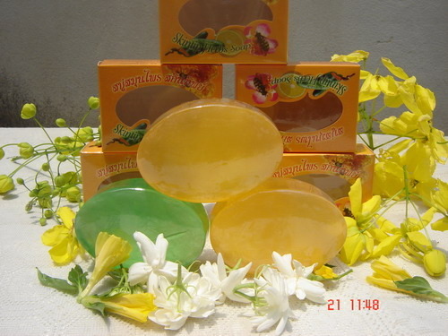 สบู่แท้จากธรรมชาติ สบู่สมุนไพรสกินทิพย์ ทุกวันนี้พวกเราใช้สบู่จากสารเคมีเป็นส่วนมาก ถึงแม้ว่าจะมีโฆษณาว่า เป็นสบู่จากธรรมชาติก็ตาม แท้จริงแล้วในเนื้อสบู่ก็จะมีสารเคมีปะปน ให้สังเกตุได้ว่า สบู่ที่ใช้จะมีฟองมาก หลังใช้จะรู้สึกลื่น ผิวตึง และผิวแห้ง สบู่แท้จากธรรมชาติ สบู่สกินทิพย์ มีส่วนผสม สารสกัดผลไม้ส้ม น้ำผึ้ง กรีเซอรีนเกรดA วิตะมินอี เป็นสบู่ที่สกัดไขมันธรรมชาติจึงมี ความอ่อนโยนต่อทุกสภาพผิว ผิวไม่แห้ง ตึง ชำระล้างได้อย่างหมด ลดสาเหตุของการเกิดสิว จึงเหมาะสำหรับทุกสภาพผิว ทุกวัย คนที่ผิวหนังแพ้ง่าย หรือ คนแก่ชราที่ผิวหนังแห้ง สบู่สมุนไพรสกินทิพย์ น้ำผึ้ง